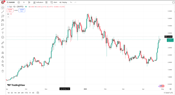 Reviewing the market at press time, Sui’s price drifted around $3.57, rising dashingly from the start of the year when it exchanged hands for almost $0.90. Such a quick rise is thanks to several high-profile game studio partnerships and a torrent of new dApps building on the Sui blockchain.