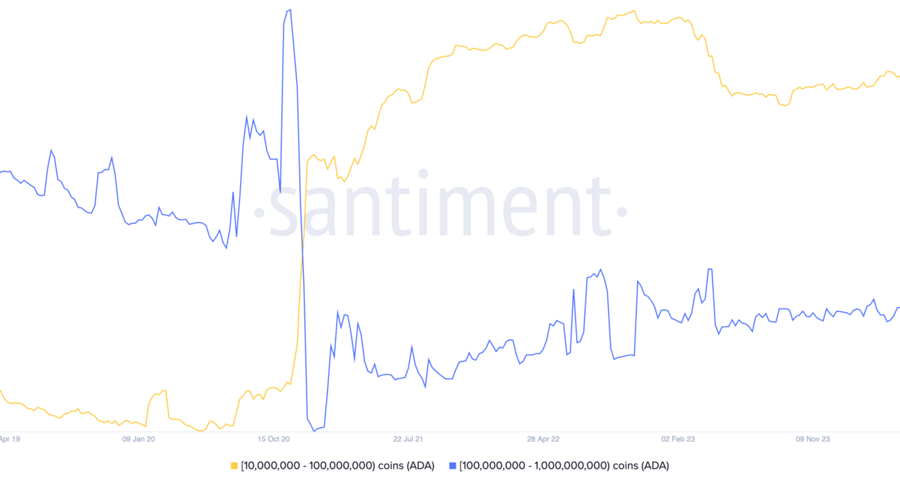 There are signs that whales are starting to accumulate as they expect the price to rebound in the coming weeks. Santiment data shows that the amount of ADA coins held by whales with between 10 million and 100 million coins has jumped to 12.8 billion, up from 12 billion in January.