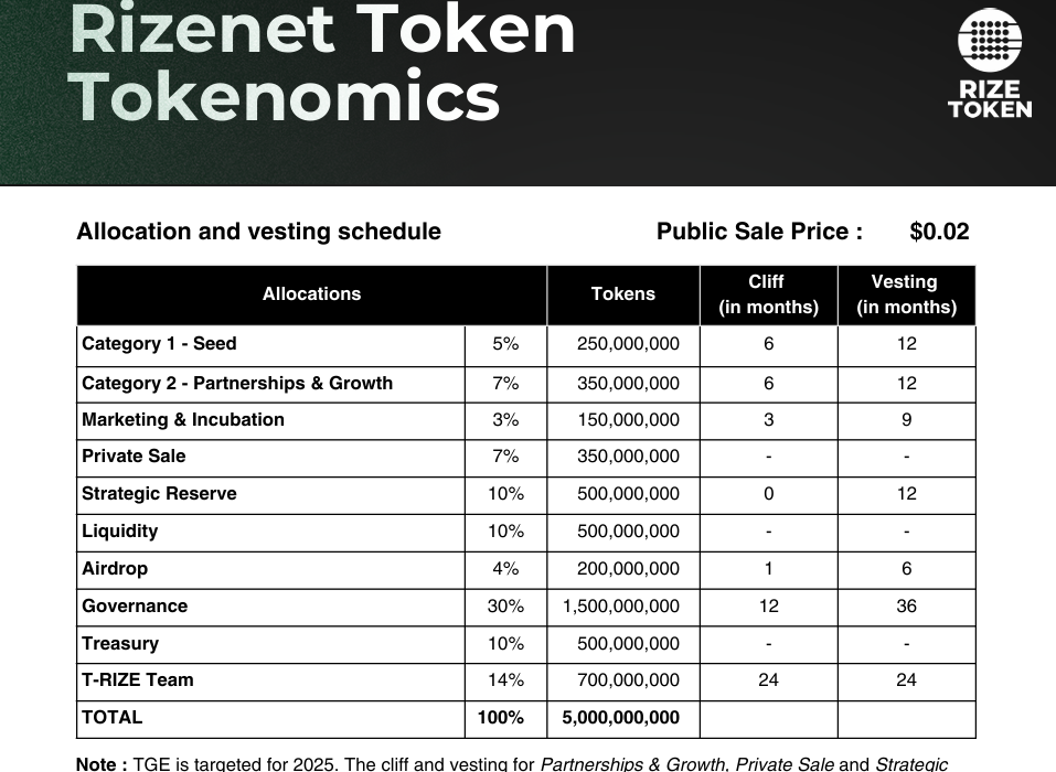 However, private sale investors, who were allocated 7% of the total supply or around 350 million tokens, faced no lockup or vesting restrictions, allowing them to trade their tokens immediately after launch. This unrestricted access likely played a key role in the early wave of sell pressure and the sharp decline in RIZE’s price shortly after it went live.