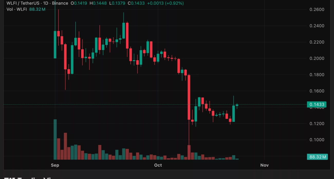 Prior to the breakout, WLFI (WLFI) had been in a downtrend from $0.25, struggling to maintain momentum. However, buyers stepped in aggressively around the $0.12 support level, helping the token reclaim the $0.14 region.