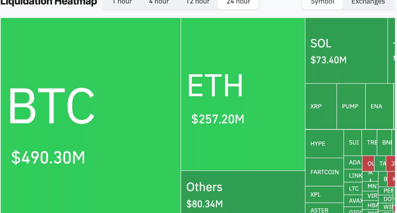 Data shows the 24–hour Bitcoin liquidations jumped to over $483 million, representing a big share of the combined liquidations in the crypto industry. One trader on Hyperliquid suffered a $21.4 million wipeout.