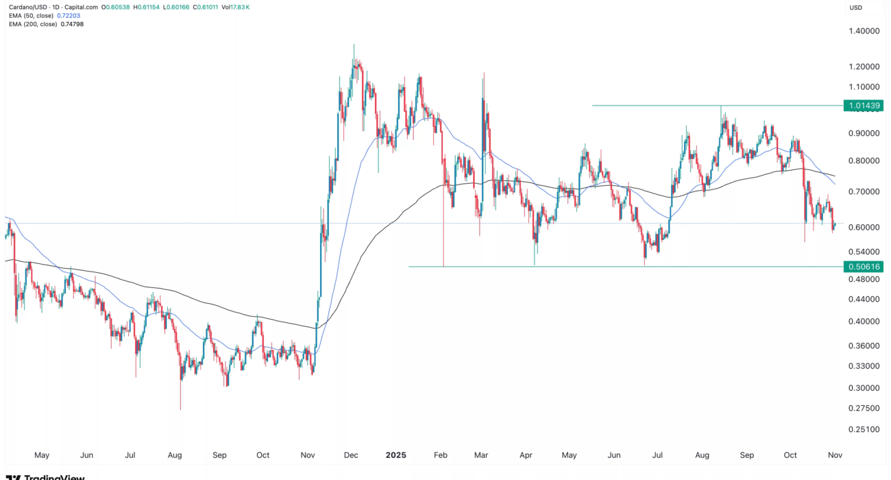 Cardano price remained under pressure on Saturday, Nov. 1, and observers wonder whether it could be at risk of further downside.