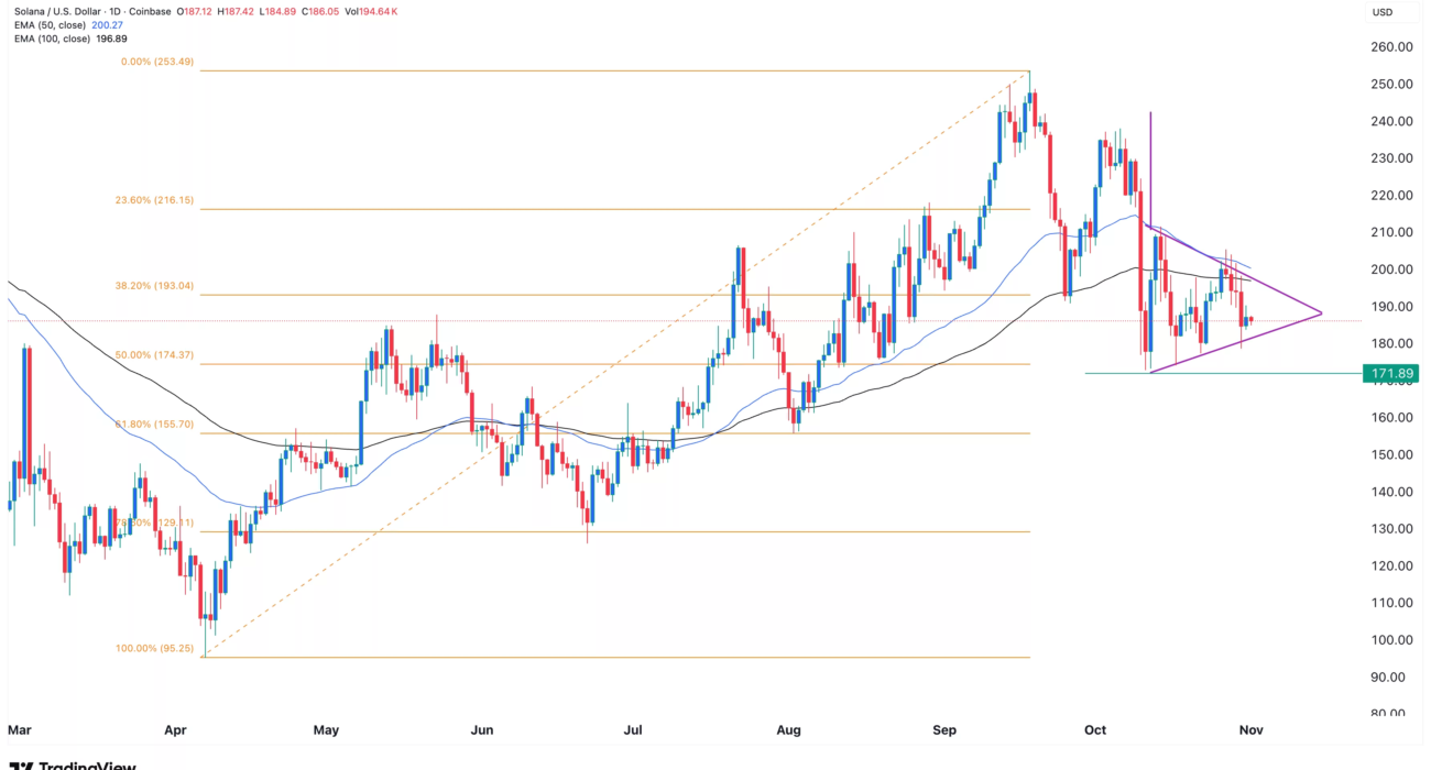 Solana (SOL) token was trading at $185 today, Nov. 1, much lower than the year-to-date high of nearly $300.