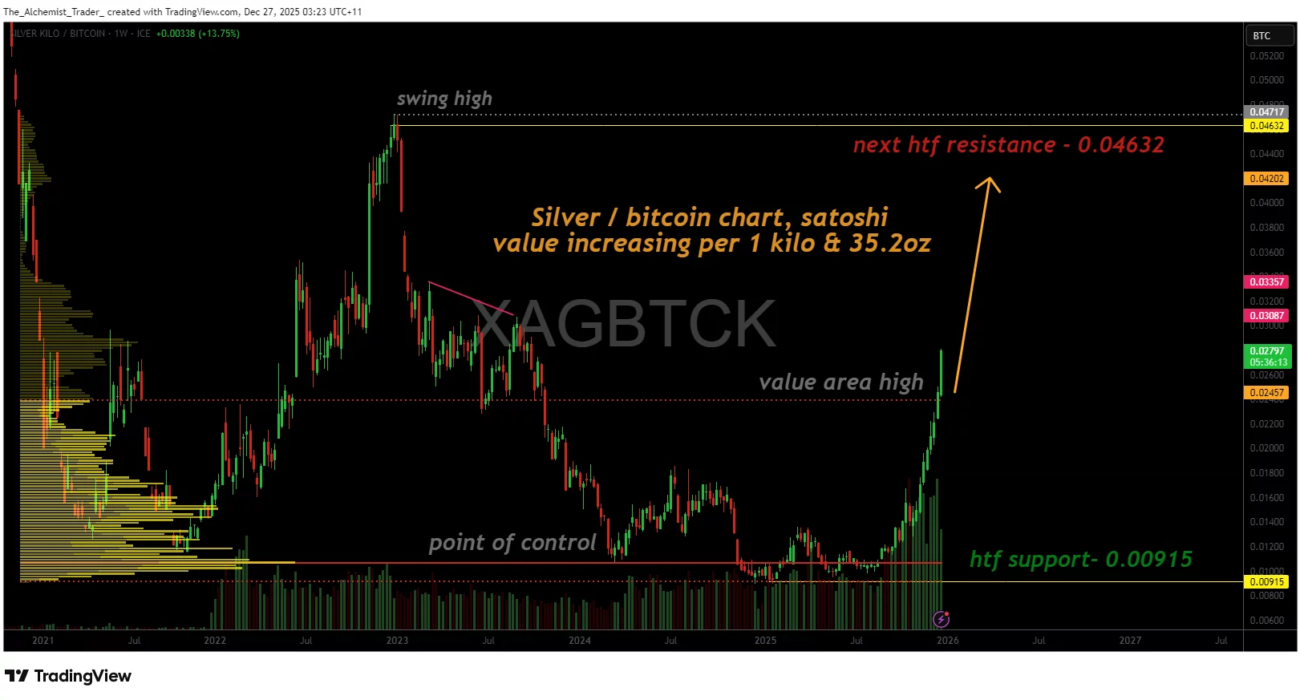In other words, even if Bitcoin’s dollar price stays the same, Bitcoin can become more expensive in silver terms when silver rises. This reflects a shift in market dynamics, in which investors are placing greater value on physical assets such as silver.