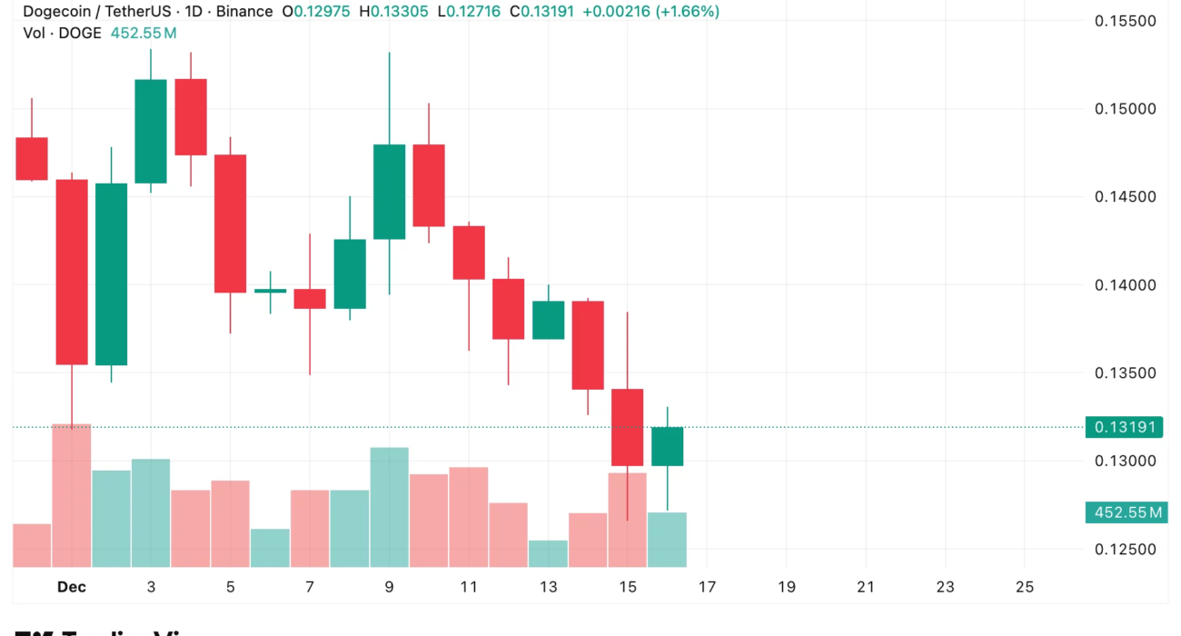 DOGE 1-day chart, December 2025 | Source: crypto.news