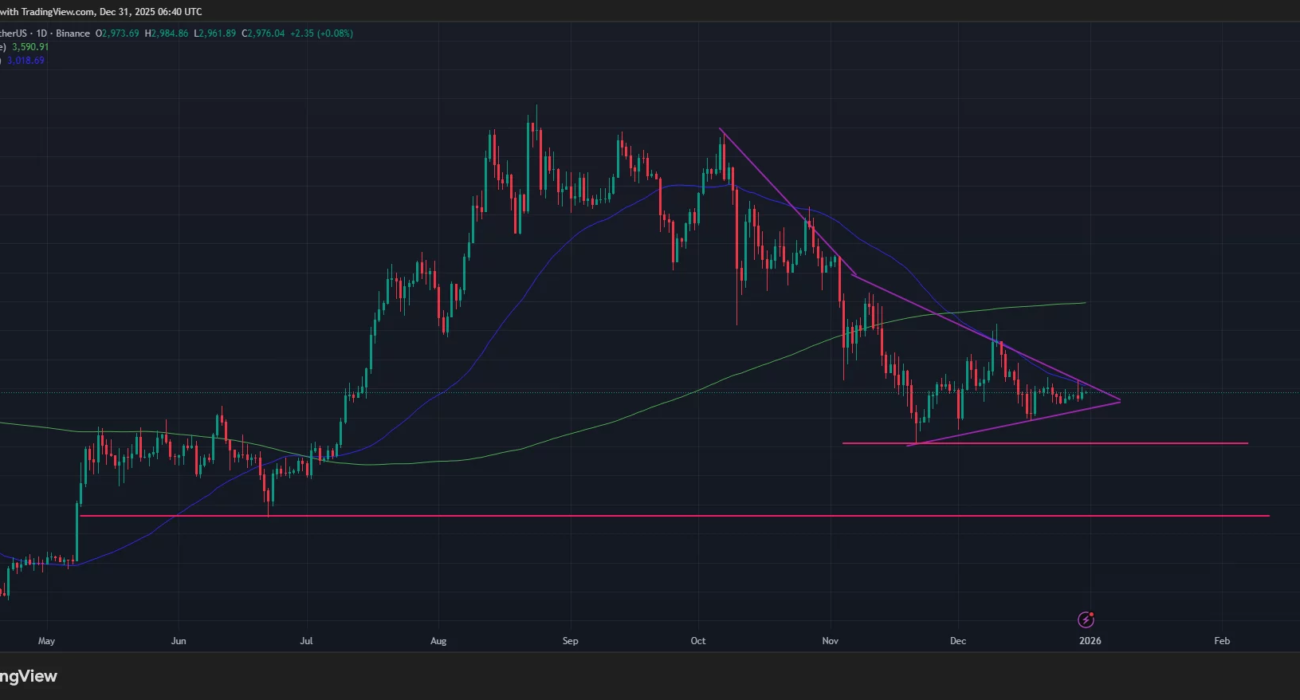 According to data from crypto.news, Ethereum (ETH) price has fallen nearly 14% from its December high of $3,432. Trading at a little below $3,000 when writing, ETH losses were more severe when zooming out the charts, as it stands nearly 40% below its all-time high of $4,946.