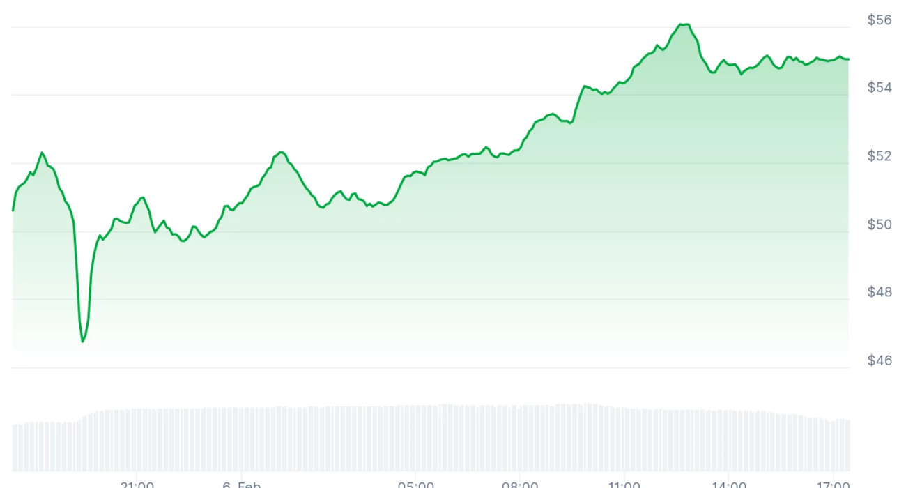 • Litecoin saw an 8% increase, trading around $54, as traders rotated into altcoins following Bitcoin’s recovery and reduced margin stress.