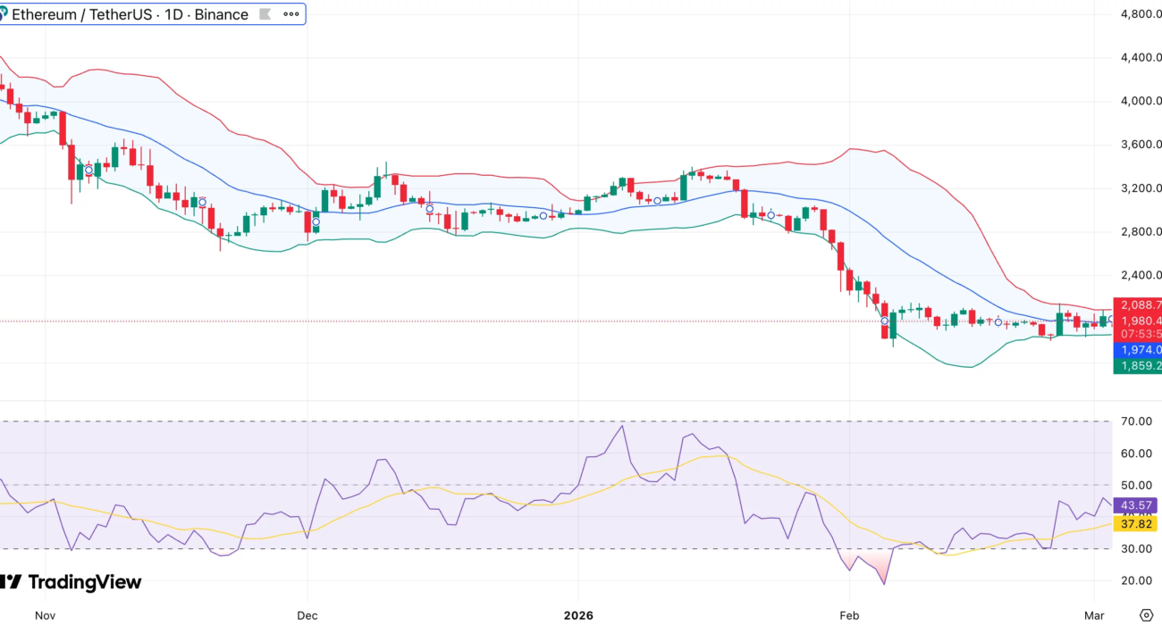 Ethereum (ETH) is trading at $2,001 at press time, down 4.3% in the past 24 hours. The seven-day range stands between $1,841 and $2,099. ETH is still up 7.7% over the past week but down 14% in the last 30 days.