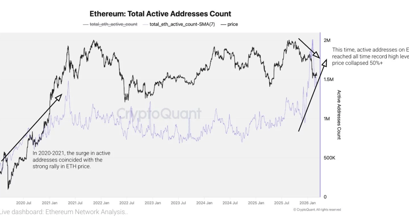 According to analysis from CryptoQuant, the number of active Ethereum (ETH) addresses has climbed to some of the highest levels in the network’s history, signaling increased participation across the ecosystem.
