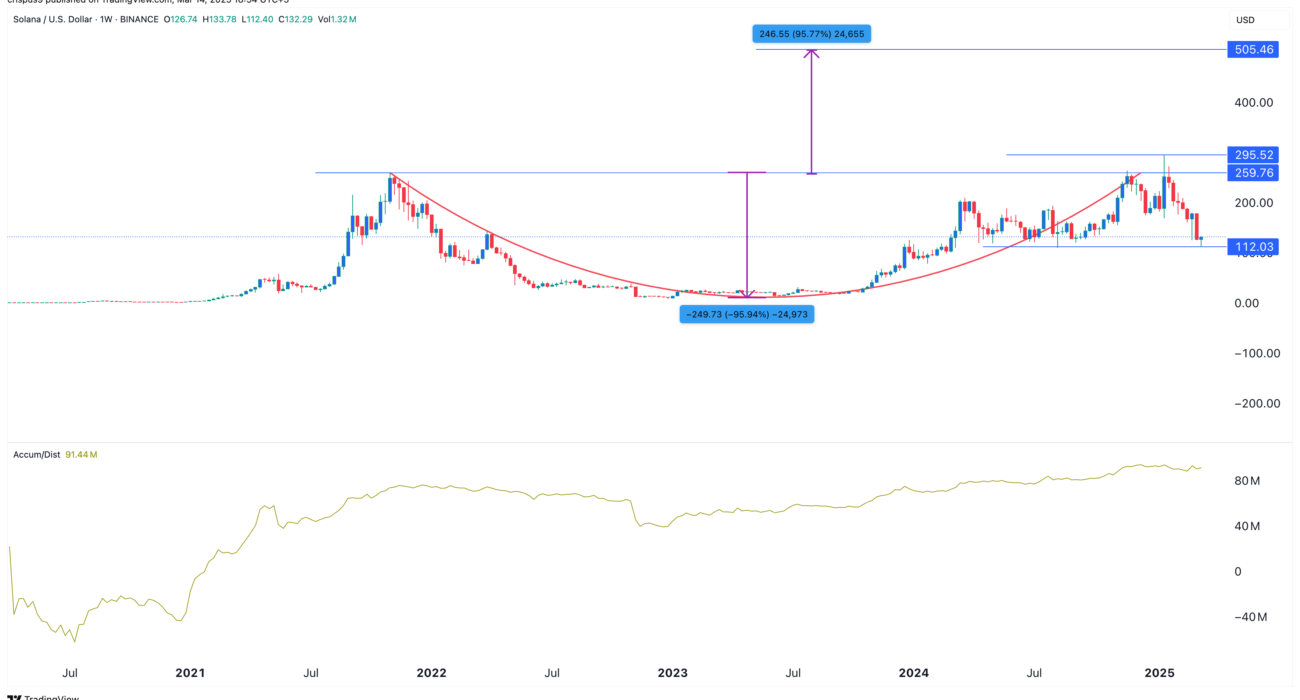 Solana price slowly forms a rare pattern: can SOL surge 270%?